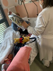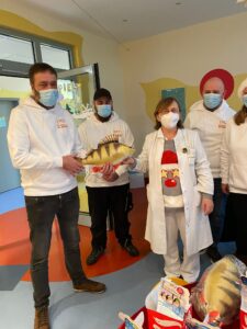 2023, den Barsch, als Plüschtier, der mit freundlicher Unterstützung des Herstellers GabyFish, gemeinsam mit dem Verein und Dr. Lucia Wocko den kleinen Patienten übergeben wurde. Neben den Plüschtieren gab es auch weitere gefüllte Nikolausstiefel mit Spielsachen für die kleinen Patienten, die durch „Nani’s Kinderparadies“ aus Oranienburg bereitgestellt wurden. Dr. Lucia Wocko, Chefärztin der Abteilung für Kinder- und Jugendmedizin, freute sich für die kleinen Patienten der Kinder- und Jungendstation. Sie besuchte einige Patienten mit dem Weihnachtsmann und übergab die mitgebrachten Geschenke.
